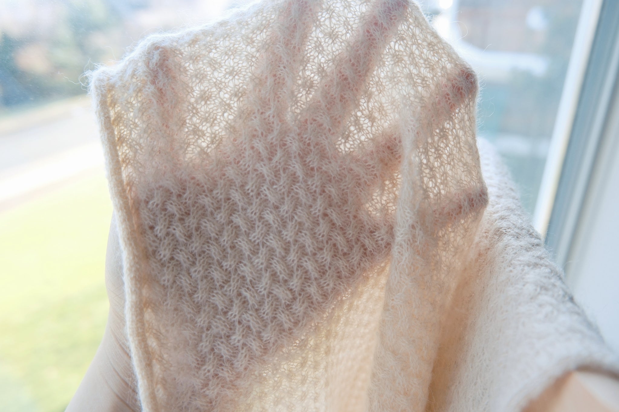 This lightweight knit is made from a soft mohair-blend yarn with a delicate, airy feel.